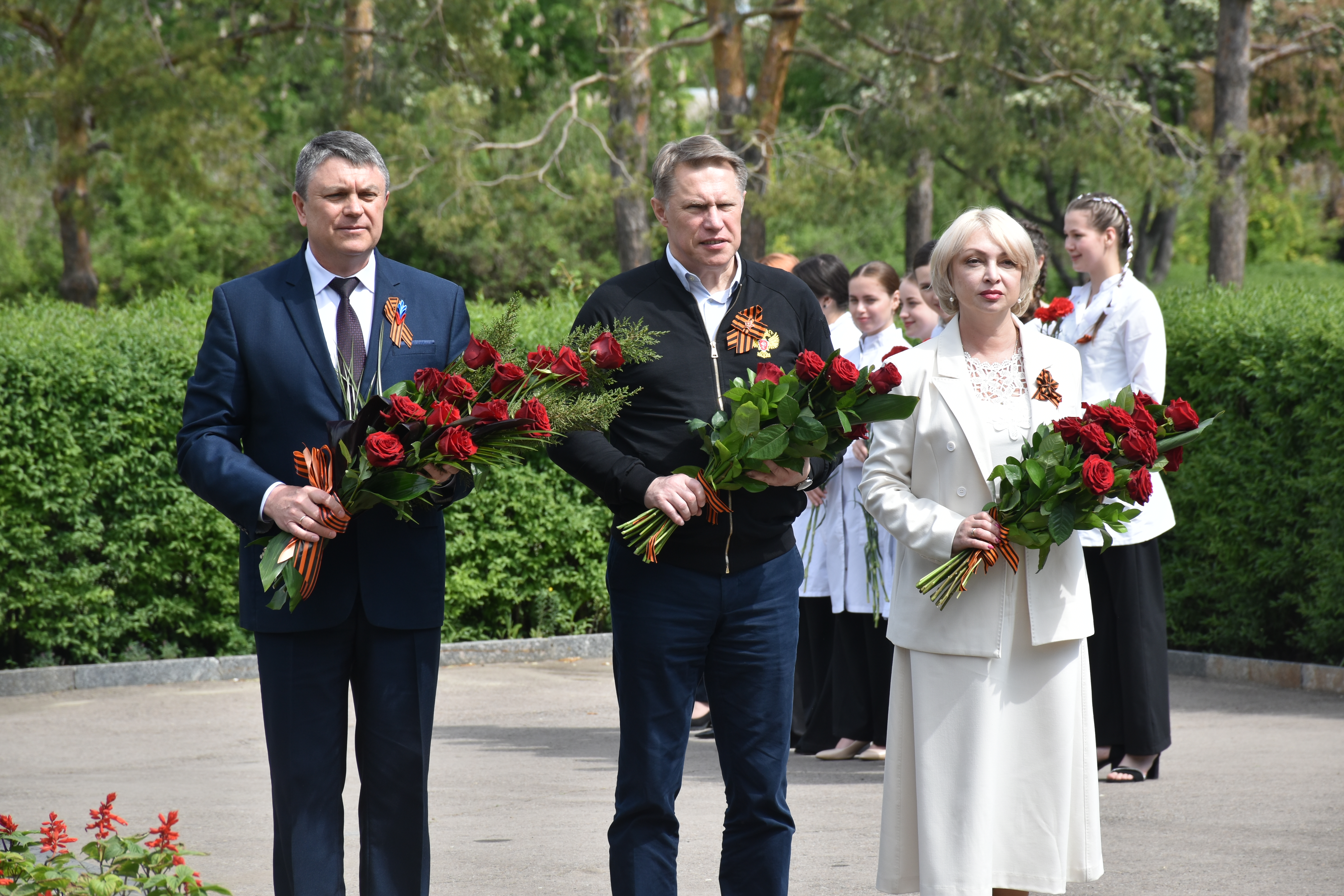 В преддверии 80-летия Победы в Великой Отечественной войне Министр здравоохранения Российской Федерации Михаил Мурашко посетил Луганскую Народную Республику. Вместе с Главой Луганской Народной Республики Леонидом Пасечником и студентами Луганского государственного медицинского университета имени Святителя Луки Минздрава России он возложил цветы к братской могиле воинов Великой Отечественной войны.