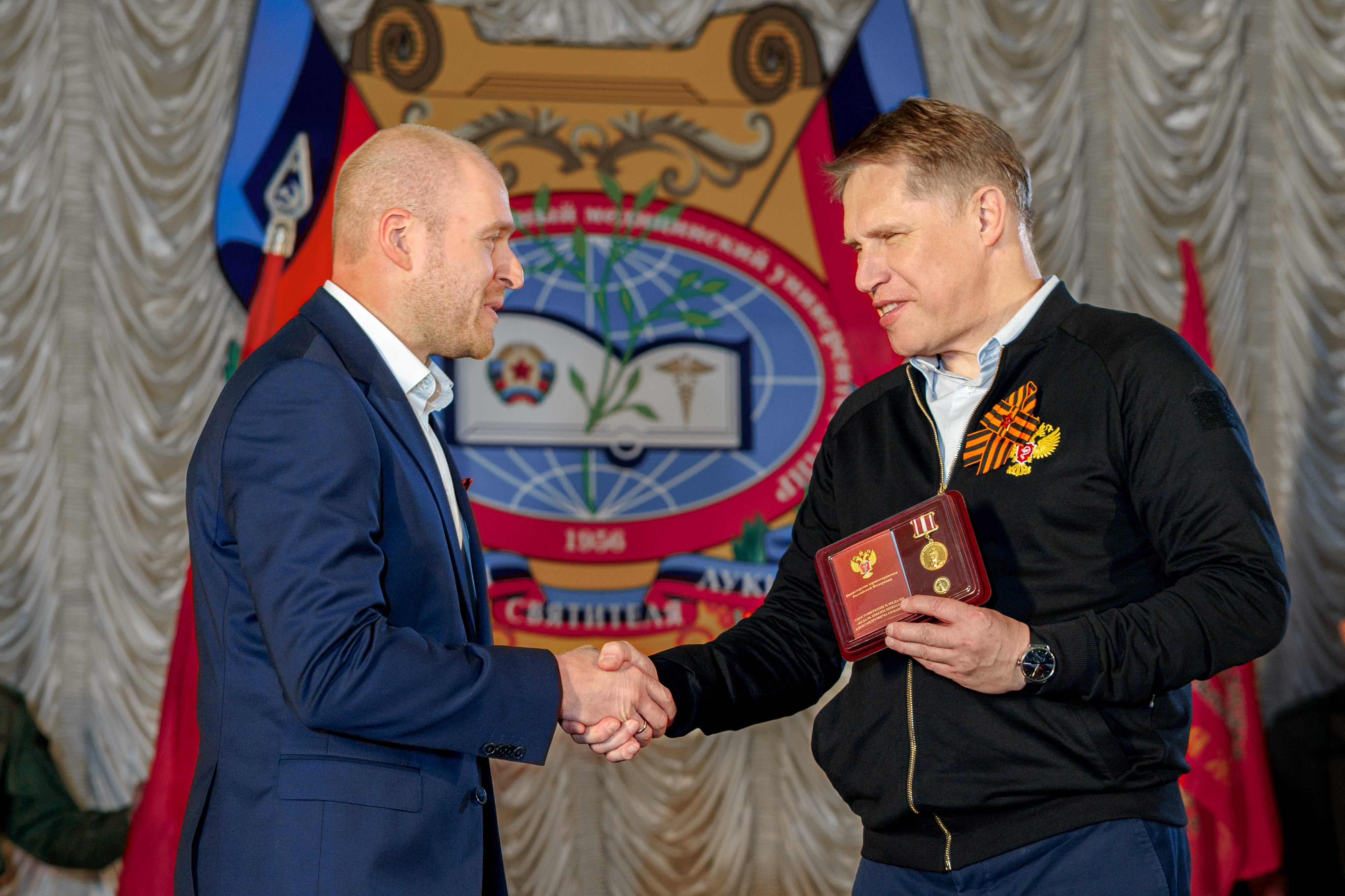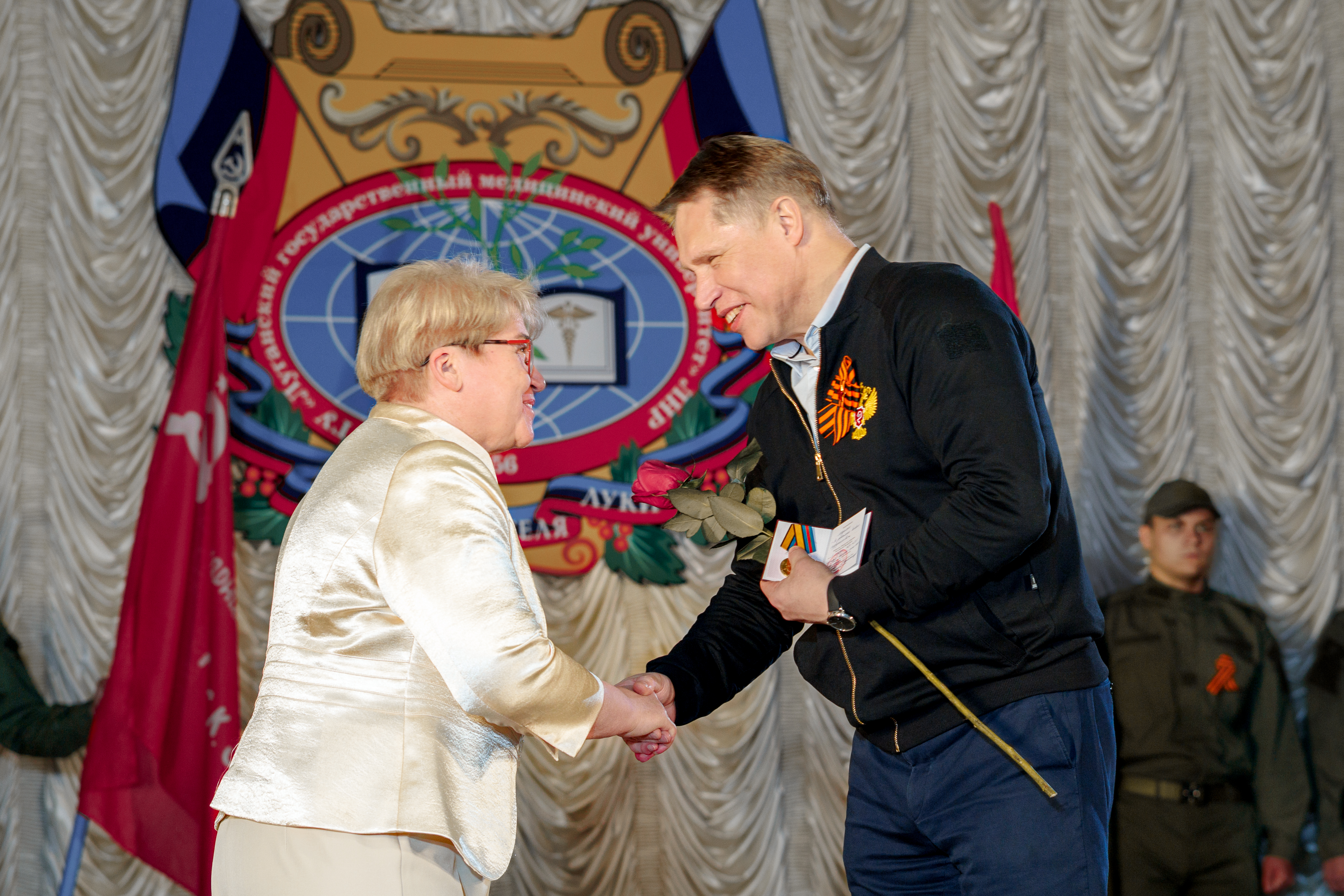 — Мы активно развиваем сегодня Луганский государственный медицинский университет и медицинские колледжи, в составе университета их пять. Как раз сегодня с правительством региона мы обсуждали меры поддержки, меры по развитию нашего образовательного учреждения и потребность на каждом рабочем месте в том или ином специалисте, — сообщил журналистам министр здравоохранения РФ Михаил Мурашко.
