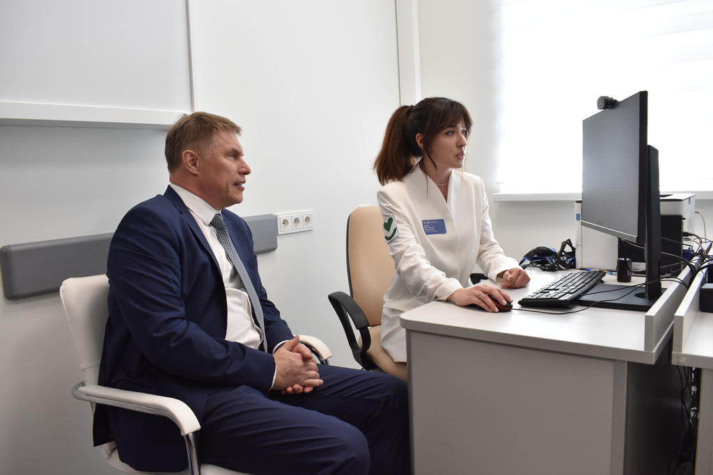 В ходе посещения медучреждения Министр пообщался с двумя пациентками, у которых заболевания выявили на досимптомной стадии в рамках диспансеризации.