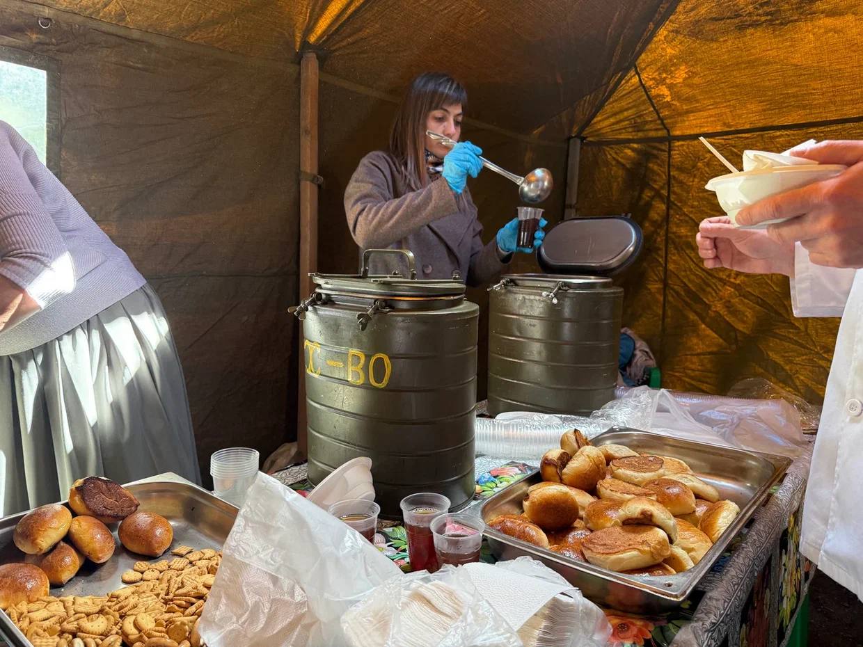 После торжественной части участников мероприятия ждала полевая кухня с горячей гречневой кашей, пирогами и чаем.