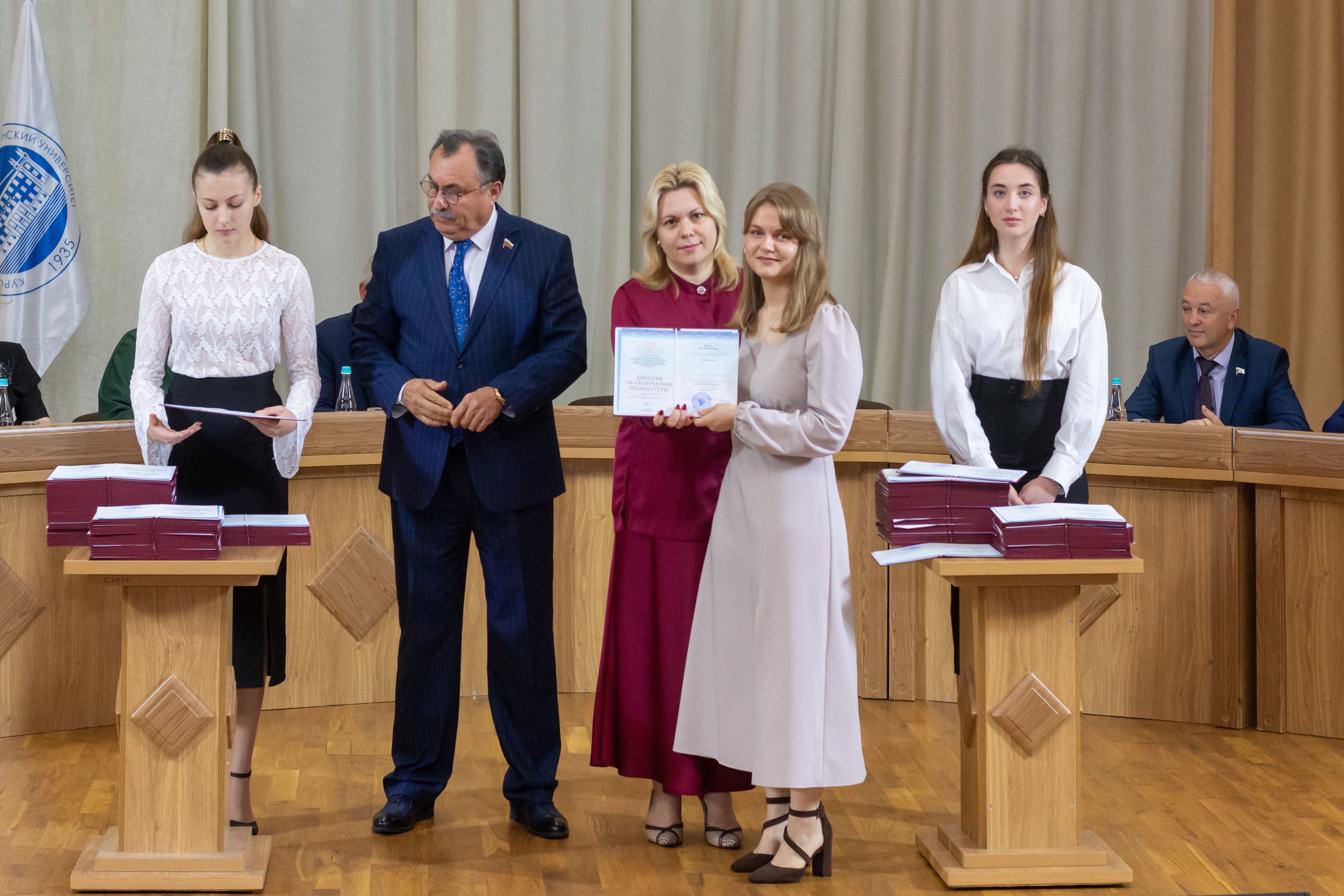Дипломы получили 256 молодых врачей по 36 самым востребованным специальностям. Большинство из них уже получили серьезный практический опыт, помогая тем, кто оказался в самом эпицентре вторжения, спасая людей, рискуя при этом собственными жизнями. Не зря вместе с документами об образовании многие получили награды за работу в условиях чрезвычайной ситуации. Среди сегодняшних выпускников – Дарья Коннова, врач бригады скорой помощи, атакованной под Суджей 6 августа прошлого года. В результате нападения коллеги Дарьи погибли, сама она получила серьезные ранения, но не отказалась от решения связать свою жизнь с медициной.