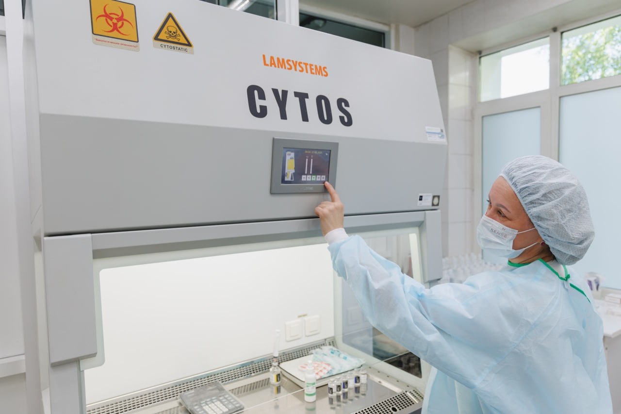 — Важнейшим элементом работы отделения является внедрение системы многоуровневого контроля. Лист назначения подписывает лечащий врач, утверждает заведующий отделением и перед разведением проверяет руководитель отделения. В дальнейшем в отделении будет внедрена автоматическая система для разведения препаратов, которая обеспечит точность дозирования до 0,1 мг. Подобные системы успешно используются в ведущих онкологических центрах страны, — прокомментировал Андрей Лукин, главный врач ЧОКЦОиЯМ, главный онколог МЗЧО, км.н.