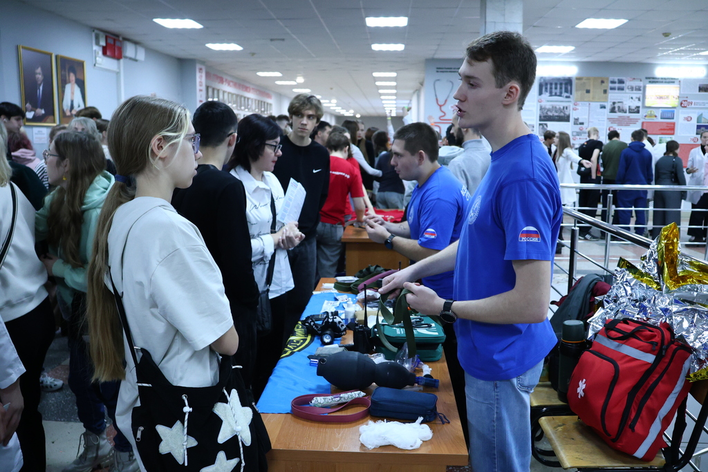 Оживленную атмосферу мероприятия создали студенты-активисты, которые рассказали ребятам о внеучебной жизни, возможностях для самореализации и поделились собственным опытом поступления и обучения. Была представлена интерактивная площадка «Медико-профилактическое дело: клиническая лабораторная диагностика», на которой ребятам узнали, как осуществляется забор и анализ крови. Активисты регионального отделения ВОД «Волонтеры-медики» продемонстрировали навыки наложения жгута для экстренной остановки кровотечений. На площадке по лечебному делу «проводили» диспансеризацию. Кроме того, работала площадка по профориентационному консультированию.