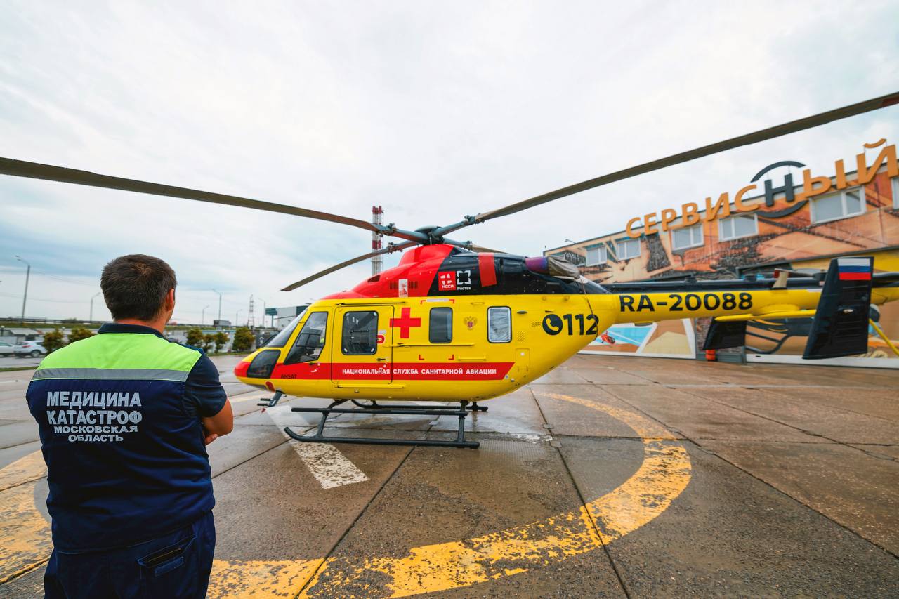 В Московкой области для оказания медицинской помощи пострадавшим в ДТП и других чрезвычайных происшествиях, а также для межбольничной транспортировки пациентов применяются вертолеты санитарной авиации.