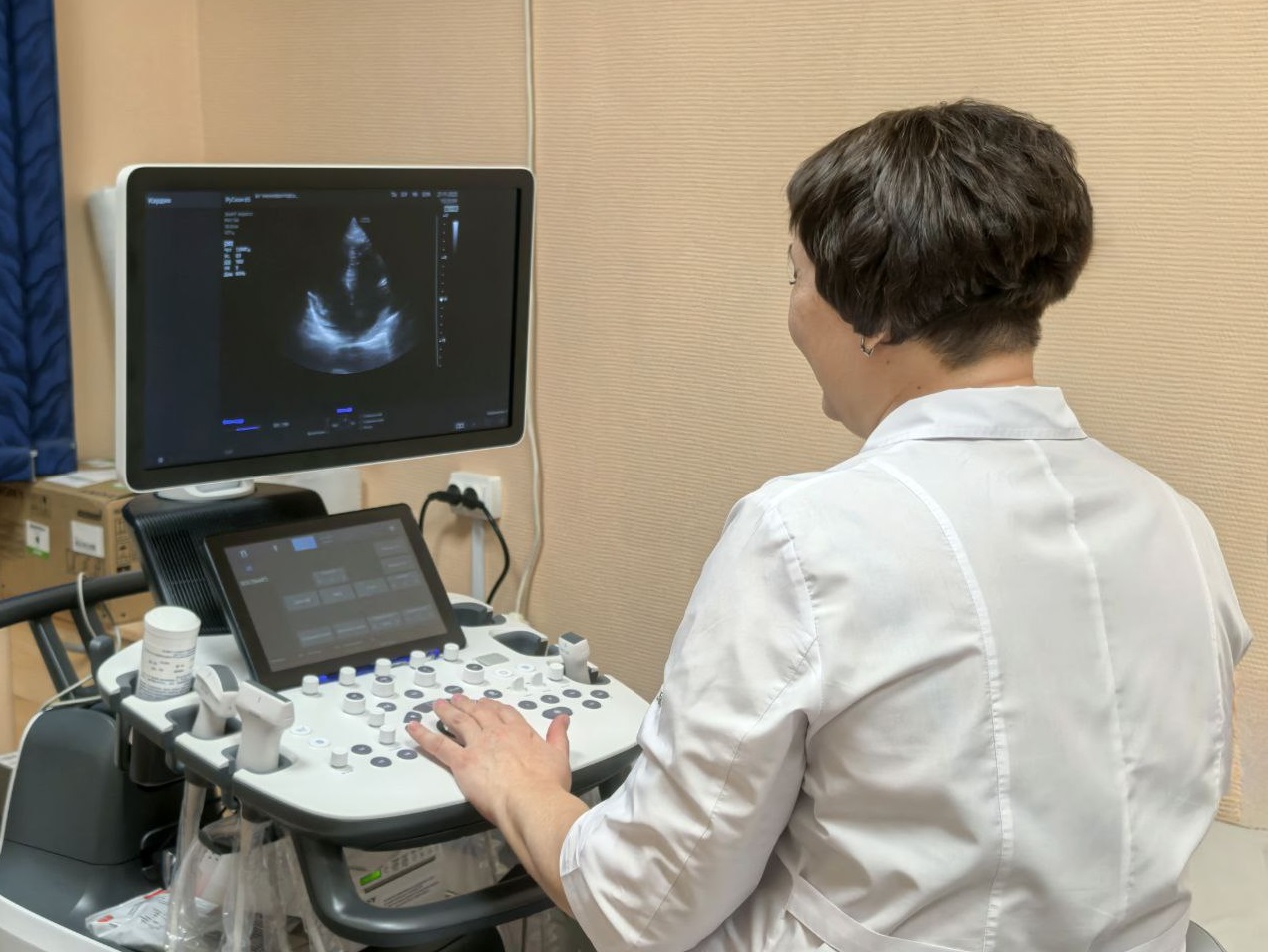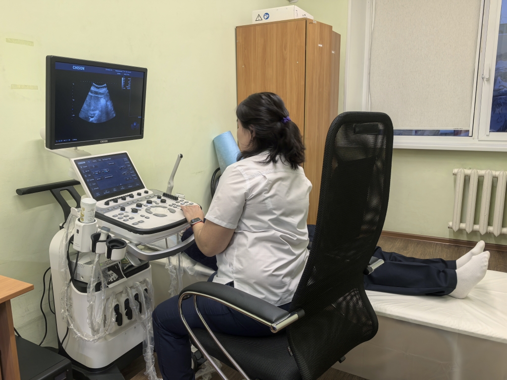 Один из новых аппаратов — экспертный ультразвуковой сканер «РуСкан 65». Это высокоточная диагностическая система с сенсорной панелью управления, которая позволяет проводить исследования в самых разных областях – от акушерства и гинекологии до кардиологии и онкологии. Аппарат оснащен пятью портами для подключения датчиков и обеспечивает экспертное качество изображения. Благодаря современным технологиям обработки сигнала, он позволяет получать четкое и детализированное изображение, что крайне важно для постановки точного диагноза.