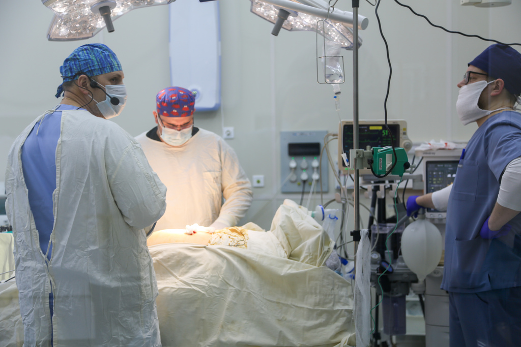 За ходом процесса благодаря онлайн-трансляции в актовом зале следили действующие хирурги, врачи, ординаторы и студенты Медицинского института Новгородского государственного университета.