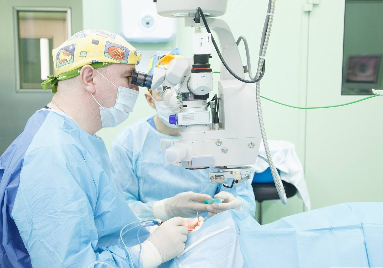 С учётом тяжести состояния и в целях сокращения сроков лечения медицинским консилиумом было принято решение выполнить все оперативные этапы в рамках одной хирургической сессии, под одним наркозом. Общая продолжительность оперативного вмешательства составила около 8 часов. В ходе операции нейрохирурги устранили объёмные образования головного мозга, а офтальмологи выполнили радикальную операцию по удалению поражённого органа.