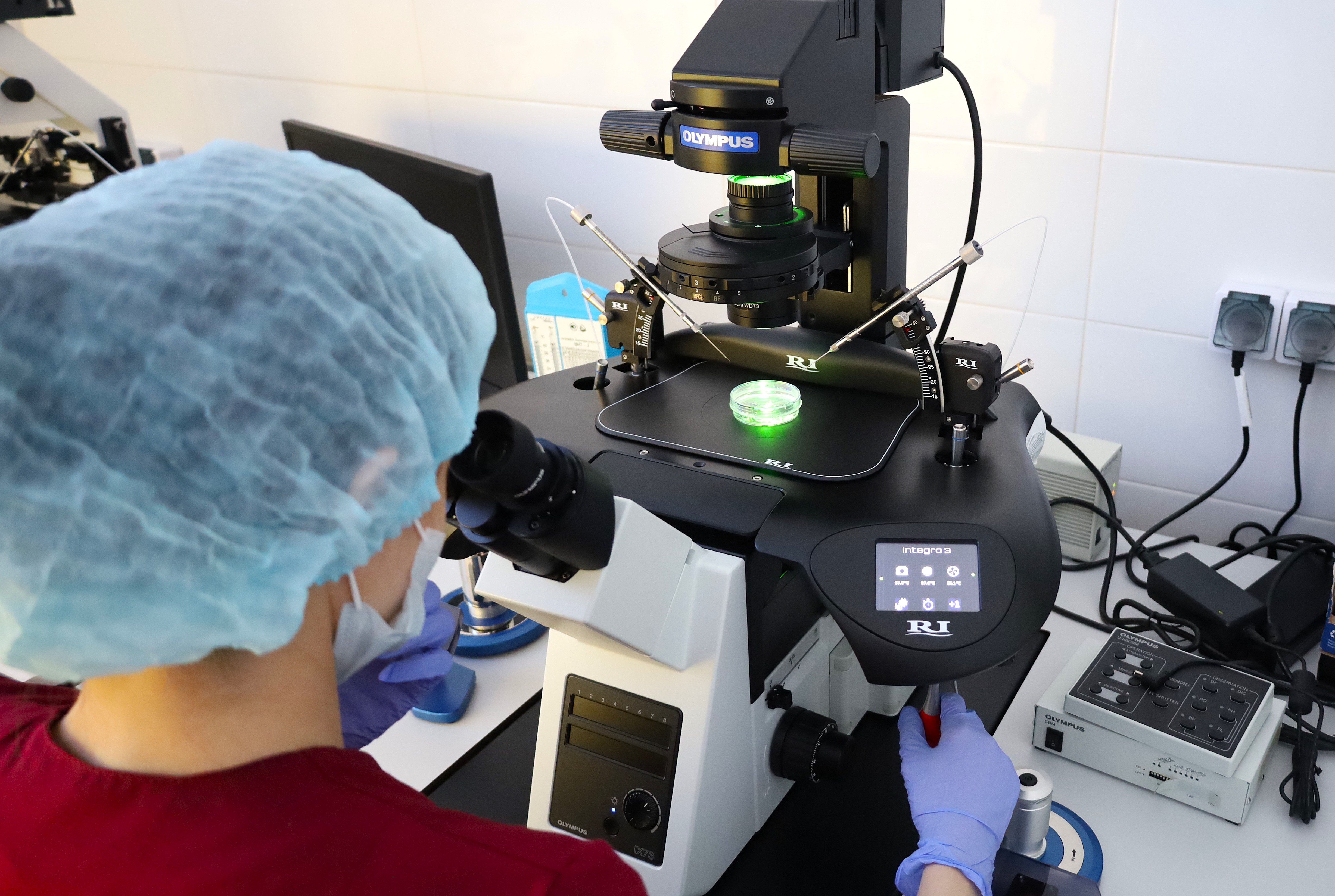 Ключевое преимущество нового микроскопа Olympus IX73 — возможность визуализировать веретено деления, специальную структуру в яйцеклетке, критически важную для правильного деления хромосом, во время процедуры ИКСИ (интрацитоплазматической инъекции сперматозоида). Высочайшее качество оптики — отличная четкость, разрешение и контрастность изображения — обеспечивает бескомпромиссную визуализацию живых клеток. Точно видя веретено деления, специалист может гарантированно избежать его повреждения иглой, что значительно повышает шансы на получение генетически полноценного, компетентного эмбриона. Полуавтоматическое управление фокусом и настройками ускоряет работу, сокращая время пребывания хрупких эмбрионов во внешней среде, что также положительно сказывается на их жизнеспособности.