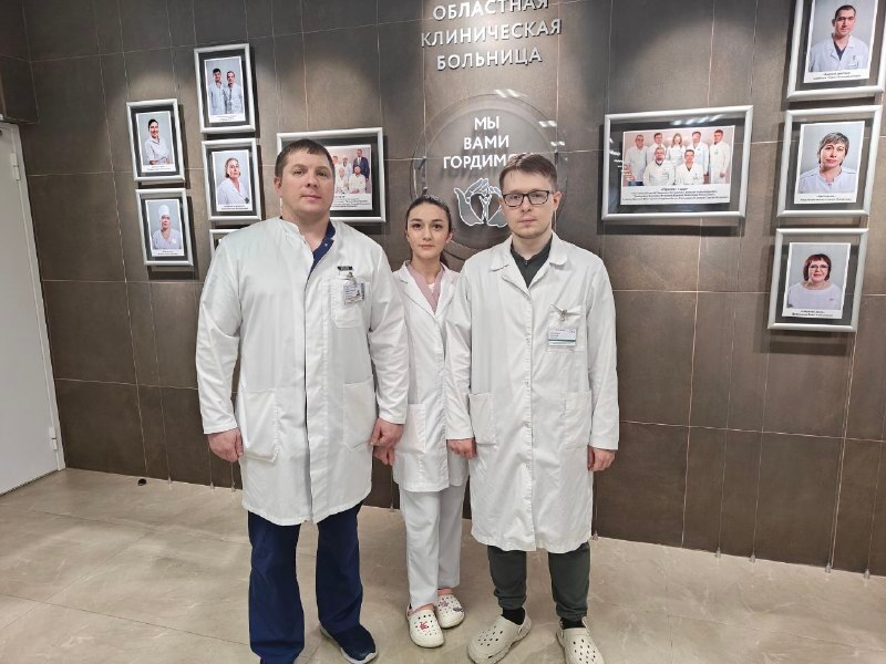 На фото оперирующий врач заведующий ЛОР-отделением Медвежинский Александр и его ассистенты: Юнусова Хулат и Колесников Анатолий.