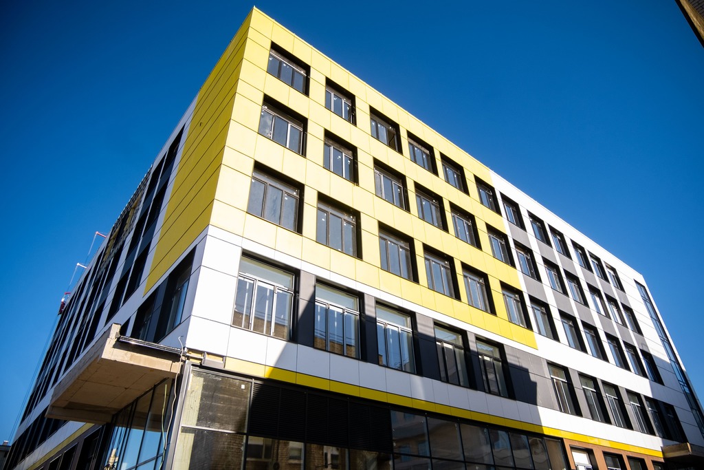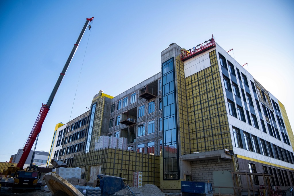 Завершается работа над окнами и витражами. Готовность фасада составляет 82%. Монтаж внутренних инженерных сетей также близок к финалу, например, водоснабжение и канализация готовы на 78%, отопление и вентиляция — на 86%.