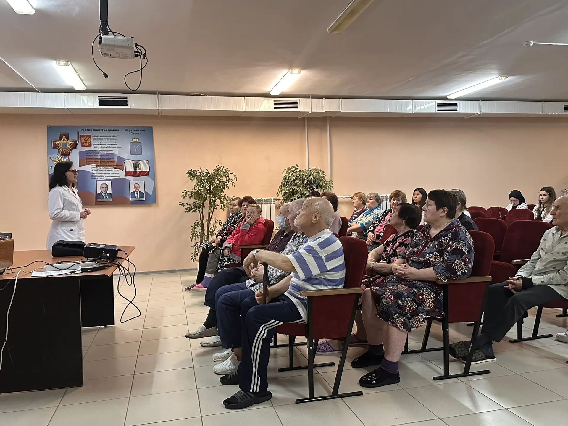 На базе Саратовского областного клинического госпиталя для ветеранов войн профессор кафедры терапии с курсами кардиологии, функциональной диагностики и гериатрии, главный внештатный специалист-гериатр Минздрава области Лариса Тюльтяева и доцент кафедры Виктория Сергеева совместно со студентами 6 курса Института клинической медицины организовали «Школу пожилого человека».