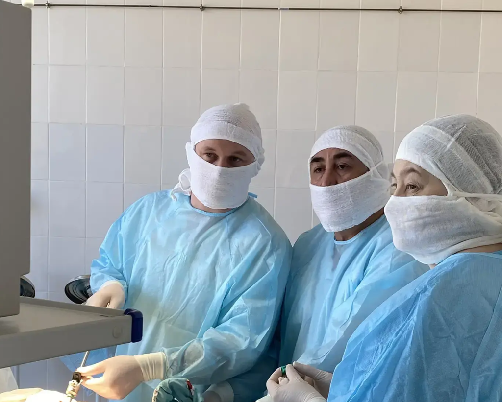 — Для отделения желчного пузыря от печени и рассечения окружающих тканей мы применяем коагулятор — инструмент, который одновременно прижигает и разрезает ткани, — прокомментировал Бахром Сайибназаров, заведующий хирургическим отделением, врач-хирург Районной больницы г.Еманжелинск.
